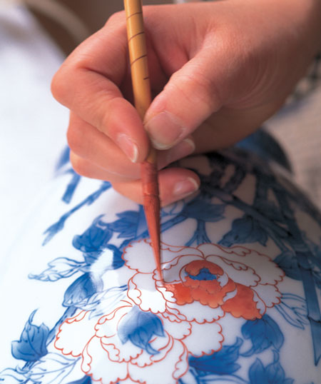 景德镇素有“瓷都”美誉,瓷器是我国古代伟大的发明之一。陶器出现在新石器时代,是人类生活中的一个重要发明创造。 制瓷是一种专门技术,要根据不同的用途对原料进行加工。制作一件陶瓷作品,首先要备有原料高岭土,经手工拉坯整理成型再施釉待干后人窑,经过1300度左右的窑火氧化还原反应方成一件作品。人类为了创造出更为美好的陶瓷制品来满足于日常生活用品及在艺术感情上的需要,而创造出众多的陶瓷彩绘种类和技法,如从种类上陶器彩绘分为:国画、西画、图案。从技法上陶器彩绘分为:釉下彩、釉上彩、综合装饰。众所周知创作一件好的陶瓷艺术作品必需有必备的绘画工具和材料,但对陶瓷创作有一定意义的还远不止这些,在我们的生活中还有其它众多产业皆对陶瓷创作有一定意义。 一、生物业:茶叶、甘油、大蒜、牛胶、植物油 人类在工作中的不断发现皆有他的偶然性与必然性。在很早以前,人们在绘制釉下彩中对用青花料在坯体上的绘制就进行了一些辅助性的处理。如甘油、茶叶,为了容易画线条,在调青花料时可适当加入甘油数滴,使笔上的料水不易很快被坯体吸干,线条易画得均匀和快速。另外加甘油画的料线,能使料线与坯体凝结,在分水时不易冲掉料线。 在青花分水时,为了使料水易于运用,须加入泡好的较浓的隔夜冷茶汁,用分水笔把料水调匀,这样在分水时不会因笔上所含料水不均匀,有渗水现象而难掌握,能得到理想的浓淡光影透视效果,而成为满意的陶瓷艺术作品。 在釉上彩的绘制中如釉上描金,以本金粉加入适量西洋赤配置于调色碟内,使它充分混合,然后加入以纱布包裹挤窄的大蒜汁适量,充分搅拌至不见颗粒状为宜,再进行描绘制作,冈蒜汁的粘性强,可以使金粉充分凝聚,不易产生“脱衣”现象,便于使用和烧成。 釉上彩中大面积的水颜料的使用,或画线常用牛胶来调配水颜料,填大面积的水料加入牛胶易于填得平整而不产生渗水现象耽误作业。用胶水料画线不易脱落,再罩上其它油料时,方便、快捷、易掌握,提高工作效率。 彩绘釉上彩,通常还有用植物油来调配长时间未用的颜料进行绘制瓷器的。因植物油活性强,不易于结,绘制中较流畅,易于操作。另外如用核桃油进行调料来画手掌画,对手的腐蚀性小,画出的画面层次丰富,质感,润泽度高,便于掌握作用。 二、工业:酒精、橡胶水(甲苯)、干漆、氢氟酸 在陶器釉上彩绘中,酒精的用途是必不可少的,釉上彩绘贴花中酒精是一种重要材料。首先将酒精和水按7:3的比例(根据不同气候改变配比)充分搅匀,然后将已剪备好的花纸附与瓷面,用排笔沾酒精水溶液均匀涂与花纸的附着面,苒用软皮刮将花纸抹平,待干后人炉烧成即可。 人们知道橡胶水广泛用于家俱、油漆,谁曾想如今也广泛用于陶瓷绘画。用橡胶水调配颜料绘制画面比用樟脑油绘画干得快速,而且更易于在上面重复作画,与油画绘画中用松节油绘制有相当的功效,现被广泛运用。 · 干漆、氢氟酸在釉上彩绘中,腐蚀描金是用氢氟酸把瓷面腐蚀成有毛面的花纹,再描金烧成,烧成后成为有亮光和没有亮光的花纹。首先将干漆耐酸物化开,调成油料,用油料把花纹画于瓷面,同时在其他不腐蚀部分也涂上油料等待干燥,然后用氢氟酸涂抹瓷面空白处使迅速得到化学腐蚀(2—3分钟即可)后,用清水冲洗掉酸溶液,再用樟脑油擦去干漆油料,使白胎上山现毛、光丽花纹,再在花纹上平涂金料,待干后人窑烧成,最后就呈现光、毛金色相衬托的花纹装饰。 三、服务业:面膜 在釉上陶瓷彩绘中,有一种满地粉彩装饰,在此种装饰中,先将所绘画面用淡墨勾出纹饰,将面膜均匀涂与画面内待干后,用以备好的所需粉彩油料均匀涂在瓷面空白处,然后用海棉或丝棉拍匀整个瓷面待干,把已干结的面膜撕掉露出的空白画面,人红炉烧成,再在空白处绘制理想中的画面,干后填色再人炉烧成,即是我们所需的满地粉彩艺术瓷器。 四、计算机 计算机自上世纪五十年代诞生以来,随着不断进步与更新,计算机在生活工作中已成主导地位,在陶器业中计算机早巳成为必备的主要工具之一,工作人员将通过计算机进行数字化的平面设计,三维设计等色彩效果图,以备工作中作资料或创作素材所需,在现代艺术陶瓷中特别是影像陶瓷艺术,如果离开计算机将无法工作,计算机将通过数码像机摄影成像,或计算机本身所设计的彩色效果图,整稿、照像分色(电脑分色)进行平印花纸。然后将已成像的花纸贴在所需的瓷器上进行烧成,便是一件理想的由计算机独立完成的艺术作品。 生活的更新在于不断的发现和创造,在陶瓷的创作过程中,你会发现各行各业都与陶瓷有着密切的联系,如:蜂蜜、米汤、石腊、沥青、玛瑙、海棉、树胶、丝棉等。 |