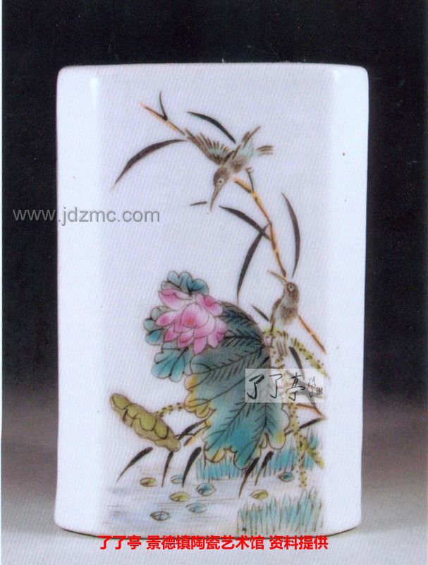 了了亭 景德镇陶瓷艺术馆 资讯,本文刊载于《陶瓷研究》: 在中国人的审美中陶瓷花鸟画体现更多的是“自然的人化”,即人的心灵与自然韵律、节奏、变化的吻合一致。人之所以与自然界的花鸟有着某种情感的对应,是人内心的式样与外界自然事物的式样有某种对应关系,是儒道两家所致力的精神与物质的相对和谐。纵观两千年的中国绘画史,道家对中国绘画界的影响甚大。道家重“逍遥游”精神,不但需在作画态度上无拘无束,而且作画目的也只是“进技于道”,“得养生焉”。