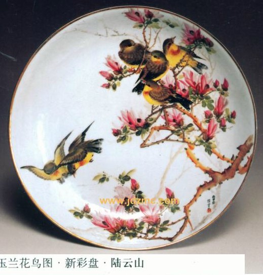 陶瓷花鸟画装饰意蕴的另一个实出表现就是以形传神。以形传神是花鸟画的传统精髓,古往今来所有的形式技法,都是围绕着这一主题做文章的。一幅花鸟瓷画作品,如缺乏生机(意趣、意韵),即使花鸟画得精细入微,那也就是一个精致的标本,而没有生命。表现生命的价值是花鸟画创作的一个重要目的。花、鸟、鱼、虫乃至一草一木,都是大自然赐予的生命。陶瓷花鸟画由于主观意向的介入,客观的花鸟超越了自然的属性,成为人们某种观念愿望的寄托,成为陶艺家遣兴抒怀的手段为人们所接受、所喜欢。陶瓷花鸟画装饰特别讲究诗情画意,注重情景交融,自由地将个人情怀坦露于作品之中。其意蕴多体现在典型环境的气氛烘托下,营造成大自然花鸟的生活情趣,以及花鸟生动活泼的形象,栩栩如生的神态,生机勃勃的意境,从而表达出作者的饱满激情。
