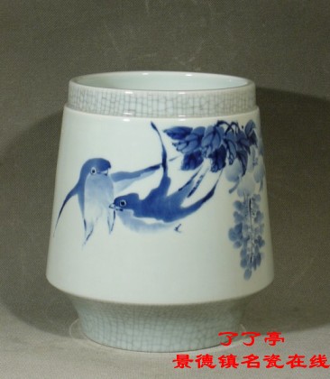 景德镇青花瓷,清秀素雅。妙趣天成的纹饰,不拘一格的构图,有很强的民族艺术特色。从元代开始,经过明、清、近代的八百年发展,青花瓷画在借鉴国画技法,融进民间艺人的艺术想象力的过程中,历代青花瓷均显示出鲜明的时代特点。 国画从起源到发展,经历了一个漫长的发展过程。从实用到艺术,从助教化到画家个性的发挥,创作题材、表现手法都有了变革。绘画材料也由绢、帛等纤维纺织品过渡到用宣纸作画。在中国绘画史的演变过程中,历代都留下了大批绘画作品和绘画理论。这些民族艺术遗产,不仅对后世的国画创作有重要的参考价值,也对景德镇的青花瓷画产生了深远的影响。 国画是用毛笔、墨、颜色,在特制的宜纸上作画。画种有人物、山水、花鸟、鱼藻、走兽五大类型,画法主要有工笔、写意两大类。画幅形式有壁画长卷、屏障、卷轴、册页、扇面。 。外师造化,中得心源”,采用-目识心记”、。以形写神”的观察表现法,采取概括、提炼、夸张、变形的手法,把自然物象变成艺术形象,赋予形象以情感,溶入作者的气质、心态,达到“形神兼备”、 -触景生情”的境界。国画以。散点透视”为主,也有“焦点透视”的构图,大干世界的繁杂物象,可以融汇在一张长卷上。春夏秋冬不同季节的花卉,能奇妙地同时绽放。以现实主义和浪漫主义相结合的手法取景、构图,往往能产生巧妙的观赏效果。 用线造型是国画的主要表现手段,刚劲的线条,起伏跌宕,纵横交错,形成高山流水,花鸟树木。结合皴擦点染、敷色、题款,手起笔落,提捺勾扫,稍过片刻,一幅墨色淋漓的水墨画就能完成。画家娴熟的作画技巧,令观赏者为之倾倒。在长期的绘画实践中,历代画师创造出人物画“十八描”,山水画“十八皴”,花鸟画“勾花点叶”、 “谐音会意”等多种技法和吉祥图案。人物画重神韵,突出人物的内心世 界。山水画强调情景交融的意境创造,花鸟画借物抒情,重视情趣的体现。这些技法,对于青花瓷画的绘制表现,同样有着重要的指导意义。 中国绘画具有悠久的历史,从晚周至汉代,人物画渐趋成熟。隋唐时期,山水、花鸟画已形成独立的画科。五代至两宋时期,水墨画盛行。文人画从唐代开始出现,宋代有很大发展。宋代开始.国画逐渐由绢画发展到用宣纸作画。宣纸有生宜和熟宜两大类,在生宜纸上作画,水墨会出现渗透晕化的现象,多用于作写意画。中国画”计白当黑”,注重空白的处理, “意到笔不到”的构图,给人以想象的空间。国画是平面艺术,构图方式吸收“高远、平远、深远”的视觉效果组成画面。横式、竖式的画面形式,有利于高远、平远的透视构图的展开。 青花瓷画的作画工具,与国画一样,都是用毛笔作画,所不同的是载体材料,颜料不一样。从古代青花瓷艺作品中可以看出,元代青花瓷是用笔锋尖、弹性好、含料多的毛笔,以勾、榻、点、涂的技法画成。这种画法,一直延续到明代宜德年间。这个时期的青花纹饰,料色浓重而凝集不散,在画面上有明显的笔痕。料色深处,还有深青色的料斑。 “工匠来四方,器成天下走”。明代,景德镇青花瓷有很大发展。明代中期的成化年间,青花瓷画吸收了国画中的。晕染法”,创造出“分水法”,其画法是,先用线笔勾线,再用分水笔在线条的轮廓中分水,使画面产生出深浅不同的层次。由于在分水时,笔尖只起到引出料水的作用,并不接触坯体,因此, “分水”作画的瓷器,画面料色均匀,没有笔痕,显得清爽明快,改变了以前的笔触现象。 清代康熙时期,青花艺人吸收国画“墨分五色”技法,在画坯时.采用“头浓、二浓、正浓、正淡、影淡-五种浓损不同的料水晕染,形成画面的多种色阶,而成为著名的。青花五彩-。康熙时期的青料是高档珠明料,料色青翠欲滴,加上“粉分五色”的技法,使得康熙青花发展到炉火纯青的层次,成为古代青花瓷珍品。 青花瓷画讲究”水路均匀”, “水路”犹如国画中的空白。通过“水路”的巧妙安排,使画面的穿插、虚实处理达到和谐的视觉效果。在构图上,既突出画面的装饰美,又通过“水路”的安排,使画面疏密有致,虚实呼应。古代的青花瓷画.元代层次繁密,明代创造出“分水法”,清代的“料分五色”.成为各朝的重要特色。 吸收国画融“诗、书、画、印”为一体的特点,青花瓷画也有融书、画为一体的作品。元代青花菊纹把杯,外壁用青料绘制缠枝菊花,杯心草书: “人生百年长在醉,算来三万六千场”,书法用笔酣畅流利,作品布局疏密得当,诗、书、画相结合,别具一格。 国画是平面装饰艺术,虽然也有圆形、扇面的形状.惧以方形为主。而瓷胎则以圆柱体为基本形状.瓶、罐、壶、杯、碗、缸,虽然器形有不少变化,但是,都是在圆柱体上的变形。国画只能从左到右,或自上而下地作画,而瓷画却能充分利用瓷胎的立体空间,上下左右,器型内外都可以随心所欲地装饰绘画。在大型坯胎上,还可以用“打散合成法”构图,在瓷胎上用锦地开光的形式,把一件瓷胎分割成扇形、圆形、菱形等多种形状,在不同的部位分别画上人物、山水、花鸟、工笔、写意均可任意挥洒.在一件作品上显示出多种风格的画画。既可一入画成,亦可大家合作。 现代青花艺术作品.与传统青花瓷画相比,创作形式、表现手法、材质利用,都有了不少变化。当代陶瓷艺术家在继承优良的传统青花绘制技艺的基础上,