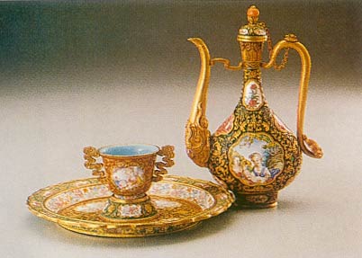 清晚期的嘉庆初年,画珐琅还保持着乾隆时代的某些遗韵,画珐琅器的生产也有几分成就。此后随着国力的衰退,画珐琅器的生产已然是日薄西山,虽曾一度出现回光返照,但毕竟是气息奄奄,无力回天了。