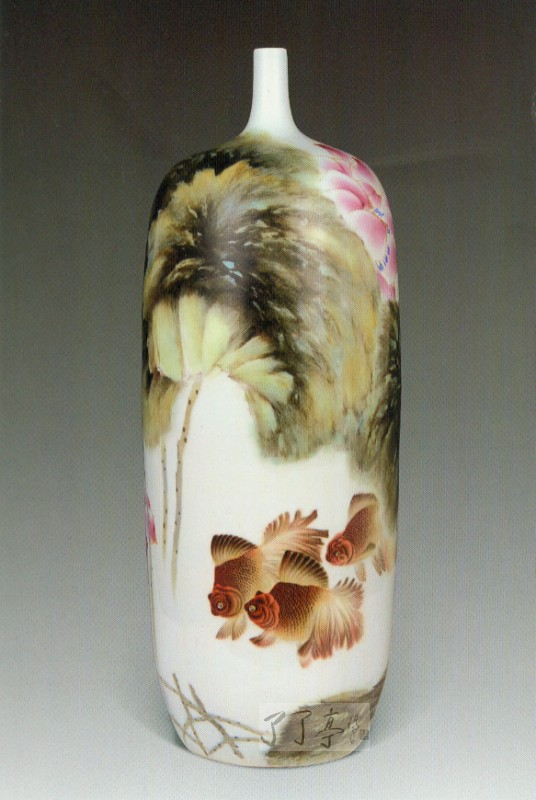 综合装饰是以两种或两种以上装饰形式结合运用到同一件产品上,产生新的艺术效果的一种陶瓷装饰门类。它形式多,极富变化,艺术特色明显、感染力强,在陶瓷美术随着科学技术的发展和新材质运用的增多,也由于艺术创作思路的拓宽,多种装饰形式的结合日趋广泛,而且结合形式和项目越来越多,越来越复杂,用历史上那种习惯的方法命名,已不能整体概括这种装饰的全貌。故而才出现用“综合装饰”这个名称来统称。 综合装饰的结合方式没有固定格式,无论是体裁形式、还是工艺材料,设计者都可根据自己的创作意图和要求安排。然而由于各类装饰形式都有本身固有的工艺和工艺要求,烧成制度也有相当的差距,在将多种不同工艺要求的材料、工艺方法集于一种产品的时候。无疑受到工艺条件的制约,设计操作者只有具备了驾驭工艺材料的本领才能创作出有一定水平的作品。综合装饰的特点是;变化灵活,丰富多彩,各种装饰形式相互衬托,互为补充、争奇斗艳,大大提高了产品的装饰效果,丰富了陶瓷美术的艺术语言和表现内容,使陶瓷产品达到一个新的艺术境界。 高温色釉瓶上面再加工粉彩,由于颜色釉和粉彩颜色的色度差别较大,更衬托出粉彩纹样肌理和玻白的厚重,既保持了粉彩的艺术技巧和特有风格,又拓宽了粉彩瓷的艺术视野。 高温颜色釉要求充分运用各种色釉在高温中的流动性和发色效果,也要求充分掌握利用色釉相应渗透后的发色变化及膨胀系数不同,达到意想不到的艺术效果。这种装饰方法是创作者对颜色釉的性能掌握达到较高水平进入到自由驾驭的表现。吹釉时要根据画面要求及釉的性能,掌握釉层的厚度,以便使釉的流动恰到好处。 颜色釉的发色在一定程度上也依赖烧成温度和气氛,制作此类作品时应考虑窑位的放置和色釉烧成温度的选择配合,也由于高温色釉流动较大,色釉的底色的刻划一般讲究大效果、整体效果,而不追求细部的刻划,但在成瓷的颜色釉瓶上可以进行细部刻划。 釉是一种覆盖在陶瓷制品表面的五色或有色的玻璃质薄层。它是与·坯体联系在一起的。当釉浆接触坯体时,坯体的毛孔迅速吸收釉浆中的水分而使悬浮的釉料均匀地吸附于坯体表面上,再经烧成,它具有美化器物的作用。 釉的种类很多。按烧成温度可分为高温釉,低温釉;按外表特征可分为透明釉、浮浊釉、颜色釉、有光釉、无光釉、纹片釉、结晶釉等。釉在烧成时会发生奇妙的美化,产生变化多端,形态离奇的色泽,这叫窑变。认识、掌握陶瓷釉料的性能及其窑变规律来表现艺术家的审美意念、情感,是艺术家成熟的标志,而能够对釉料及其密度规律得心应手地运用并取得预期的效果,是一种更高的艺术境界。 艺术家根据不同的物象,施以相应的釉色,以所表现的景象与之相吻合。突出运用色釉烘托表现物象的特征和内在精神,使其产生一种似真亦幻、瑰丽多姿的感觉,而色彩的节奏和韵律既是物象的生命律动的表现,也是艺术家生命心象的表现。 在釉色意境的追求方面正如艺术探索本身一样,还原没有达到它的最高境界。随着人们对美的认识的不断深化和提高,随着人们审美表现手段的丰富与发展,随着人类实践活动的不断进步与社会生活、人类文明的进步的不断发展,作为材质美的一个重要组成部分的釉色美,也随之被人们所识。在这里我的理解和体会有两点。 第一点,釉色本身是丰富多彩的。釉色的表现也是多种多样的,正如四季的美一样,春天的生机勃勃是美的,秋季的硕果累累同样是美的。我们说,釉色的美多彩多姿,既使同为一个配方釉,在各种不同的烧制气氛之下,也各有不同的审美特征。 第二点,自然的回归也体现于釉色的运用中,是从复杂的物象中寻求其内在的品格,质地和色彩肌理,通过充分释放媒体材料属性如釉性等,充分展示审美创作与工艺过程中留下的自然纹路,以及裸露材质和物象固有的肌理与色泽,从而达到逼真传神,本色自然的艺术效果,使观赏者在似与不似之间窥见到真实自然界,感受到鬼斧神工的天力,生命的奥妙和引发诸多的审美联想。以其朴素的本色来表现质朴情感,奔放的豪气,表现为一种纯真与原始的美,艺术家非常注重挖掘材质自身的美感因素,追求一种意趣天成、苍劲古拙的艺术风格,看似简单,实则寓意深刻,让人回味无穷。 陶瓷是火的艺术。朱琰曾在《陶说》中说“画器调色,与画家不同,器上诸色,必出火而后定”。任何一位陶瓷表现手法较全面的艺术家,都必须认识火、掌握火。火有制约,有难以驾驭的一面,它是可怕的,但又是神奇的,变化莫测的。艺术家往往能巧妙地运用火来创造这意想不到的艺术效果。既是难掌握的,但人为地控制它,又能更好的服务于陶瓷,造就着千变万化,神奇莫测的釉彩。钧瓷无双,靠得便是火焰的变化和气氛的控制。制约看起来是坏事,人们不可能超越制约的一面,但只能在制约的范围内去充分发挥其特殊作用,这才是陶艺的真正语汇。深谙火的奥妙和陶瓷艺术的语汇,去再现鬼斧神工的美丽。
