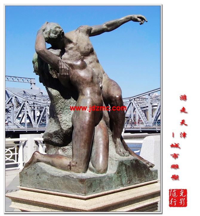 4.具象与场景雕塑 6 0年代以来,城市的更新改造规模空前,在经历了快速发展后,人们开始重视研究城市的形态,注重文脉,提出了城市是集体的记忆观点,同时受60-70年代波普艺术的影响,城市雕塑出现了反映历史事件,重视生活中具体人和物的作品。北京王府井步行街的改造中,就将老北京的人力车,京韵鼓和大碗茶等历史片段再现城市空间。还有我们景德镇步行街、广场上的人像雕塑也很好地再现了当年瓷都人民是如何做出瓷器的,这些栩栩如生的雕塑使人们愿意接近它们,喜欢它们。 结束语 “纵观雕塑艺术发展史,尽管不同时期的雕塑风格迥异,但我们仍然能够发现这样一条雕塑样式的线索,即生命的崇拜、图腾的崇拜、宗教的信仰以及个人风格生命线的自由发展”。随着人们对客观物象的认知和掌握能力的加强,雕塑家的技艺的日臻成熟和雕塑家主观意识的逐渐多的渗透以及人们审美意识的进步与发展,又由于雕塑家所属群体的文化背景的差异,以及雕塑家个人意识情感的不同,便生产出风格迥异的既有社会意义又有个人色彩的形形色色的艺术作品。需要说明的是,这些作品除了不能摆脱政治、宗教、经济及文化意识形态的影响外,但凡成功者都无不自觉的遵循着一条规律,即作品与环境的和谐统一。所以,应该建立一个便于产生优秀雕塑作品的健康的人文环境,把公共环境真正的还给公共大众,让艺术家、批评家以及公众社会一起来参与公共环境的整体规划。只有这样,我国的城市雕塑才有可能向着一个健康的高水平的方向发展。