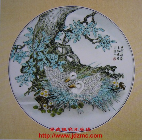 艺人在继承前人的技法上,在吸收其它姐妹艺术的长处上,不断创新开拓,我想,山水装饰在今后陶瓷艺术领域,将会更加丰富多彩。把景德镇陶瓷的装饰工艺(如粉彩、古彩、墨彩、新彩以及釉下彩等),材质(如青釉、白釉以及其它颜色釉),器型同山水画有机地结合起来,使之更为丰富。从内容形式上,从抒情角度上发展山水瓷装饰尤为重要,余文襄、汪昆容、沈盛生先生喜作雪景,剑阁栈道。缧纲、晓行、捕渔、雪渡、村墟等,这些素材恰恰是诗人们吟咏的题材。融景生情,触情入景,情景交融,使人和自然相互渗透,赋与艺人在山水装饰上以诗的气质来借物咏情。景德镇陶瓷山水画与其它姐妹工艺品以及中国画虽同属山水范畴,除从工艺技法、材质、器型有异,更为不同的是景德镇艺人大多生长在南方,所画的内容也大多是南方的山水,较北方石体坚凝,杂木丰茂,呈现关山夹一带之气氛有异,具“山水江湖,风雨溪长,峰峦晦明,林霏烟云”的长江中下游一带自然景色,正所谓“一片江南”。艺人们极为准确地抓住了南方山水的特点:土质的山,茂密的林木,平淡的河水湖泊,通过特殊的笔杆以皴法及有特殊表现力的苔点,给人一种平淡天真,清新携永的感觉。