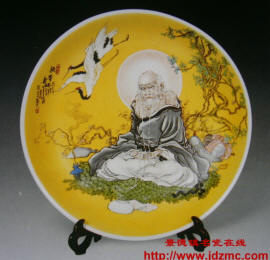 现在景德镇陶瓷装饰中的山水画甚为丰富,除传统的浅降山水(以淡赭石渲染而成,出现在晚清的一种以浓淡相间的黑色釉上彩料,在白瓷上绘制纹样皱法,再染上淡赭和极少的水绿、草绿与淡蓝等彩,经低温烧成),青绿山水(主要是运用草青色及绿色调为主)外,还出现了西赤山水(红),海碧山水(蓝),玛瑙山水等等,这些山水的技法大致是将以上单色线勾勒出山石,树木的基本形状,再用其稍淡的颜料彩出层次,这种效果使人感觉色少而不单调,层次感也甚强。至此,山水装饰已经在景德镇陶瓷艺术中形成了自己十分独特而完备的表现体系。虽然迄今它仍在不停地发展前进,愈来愈多的具有特殊个性的艺人以自己创造性的天才从各个不同的角度不断地使之丰富,使之完美。在我看来,山水装饰由民间地道的工匠画形成了今天如此丰富的瓷艺种类之一,大致经历了以下三个发展阶段:其一,在题材内容上,由以人物为主旨,山川为环境布景,到人物作点缀,山川为主题,最后到根本不出现人物的纯山水描绘。其二,从表现技法上看,由稚拙的简法写实,到精确的写实。其三,就美学追求而言,由写实到写意,由“似”,到似与不似之间,正如清代著名名画家郑板桥所说:“画到生时是熟时”。景德镇出土的很多民间青花瓷片上不难看出以上发展的全过程,从形式看,是越来越离开人的题材,而从实质看,从内容看,则越来越深入人的内心。也就是说,自然山水越来越成为“人化的自然”,即所谓“人为万物之灵,人为天地之心”,艺人以此表现自己的内心世界,抒发自己的情感,寄托自己的情怀。