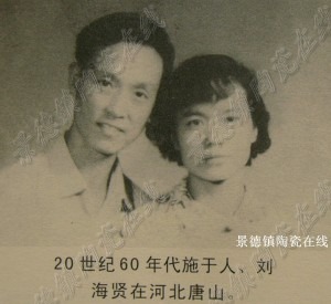 动荡的年代,挣扎的人生,多少故事,多少辛酸。但这些都已成往事,瓷器上的血渍早巳被洗净,然而我们不得不感慨施于人简短的艺术创作经历,他的经历在1958年到1979年留下大段的空白。文革中间,段茂发、施于人的老师和友人,把两件瓷器作品和上百幅设计图托付给他,这件礼物旨在帮助施于人回到他久已荒疏的艺术创作中去,也是请施于人照看这些艺术珍品。红卫兵闯到施于人家里,他们焚烧了图纸,砸碎了瓷器,痛心不已的施于人深感愧对恩师的信任,他从垃圾堆里收捡起小碗的碎瓷片,一块一块黏接回原状,如此拯救前辈艺术精华的举动,正是近代景德镇陶瓷艺术失而复得的生动体现。 1976年毛泽东去世以及随后的粉碎“四人帮”,政治风波日趋平静,邓小平作为中国的领袖正式给广大知识分子和艺术家正名。1979年,强加给施于人的“莫须有”的罪名被完全清除,他的名誉也终于得以恢复。1978年,北京著名的陶艺大师祝大年先生,专程委托施于人组织了一批景德镇陶瓷界的精英们创作北京首都机场的大型壁画群《森林之歌》,这批艺术家是中国真正的国宝,刘海贤精心地保存了