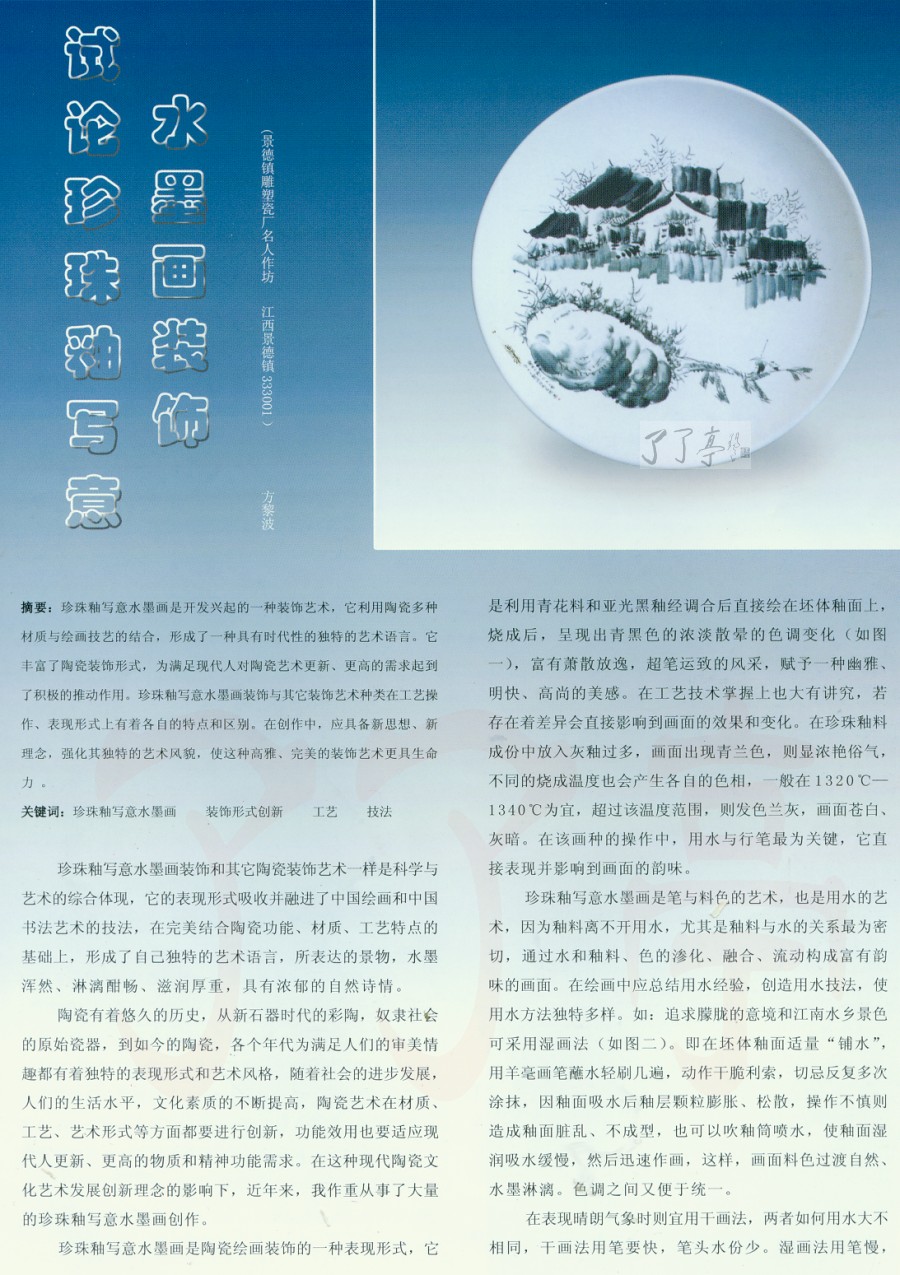 关键词,珍珠釉写意水墨画 装饰形式创新 工艺 技法