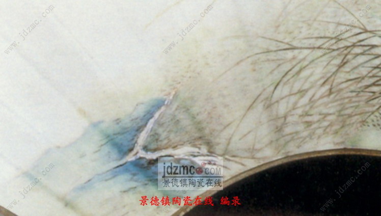 粉彩双鹿图扇形瓷板秋霞长53.5厘米。宽24.8厘米题款:“马耶,鹿耶,千夫逐逐,得者谁耶?噫!尔虽不能噬人而祸苍生者,非胥由于尔耶?己巳(1929)岁莫,秋霞女史画并题。”印章:“雨城之偶”。景德镇陶瓷馆馆藏资料 真实可信
