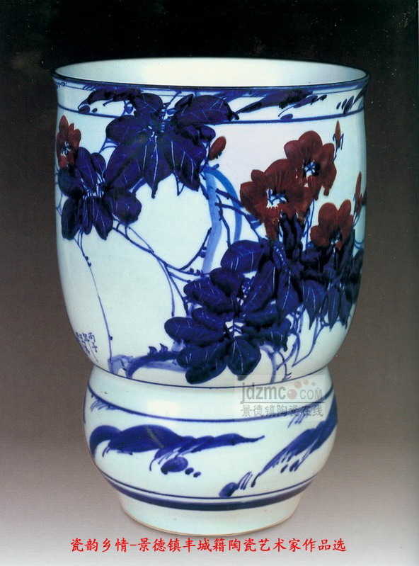 如何创新求变?笔者认为可以从以下两个方面进行探索实践: 一是装饰材料上的改进与创新。随着科技的不断进步,诞生了一些新的釉上装饰材料。例如珍珠彩、水晶绣彩等等,这些装饰材料便很有个性特色, 如果将其与青花结合起来进行装饰, 定会产生全新的艺术效果与审美意趣,有待于我们去探索实践。二是在装饰形式上进行开拓,例如青花泼墨、色彩流变、开光、刻划等等均可结合应用到青花斗彩装饰中去, 以获得新的审美意象和工艺价值。