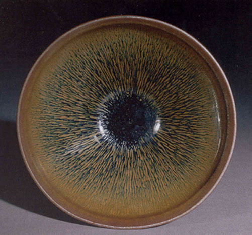 建窑瓷器的魅力在于其烧造出的窑变效果超越了黑釉的平凡,它拚弃了黑釉在视觉上的单调、贫乏与沉重感,而蜕变得神妙而又深邃。当面对漆黑茶盏看到含蓄、玄妙变化无穷的色斑肌理,总会给人以无穷的想象,并籍由在品饮的过程中,人与瓷的交流,“禅茶一味”式的哲理思索,人的心境也变得平和、而又浪漫。现在当我们感叹“建窑”制瓷工匠的高超技艺之外,也倾心于他们通过细致、纯熟的制作工艺,将流畅、素简的造型和精光内蕴的釉色斑纹,匠心独具地和谐地揉合在一起,让古代的宋人如此地爱茶如痴,爱器如狂,毕竟宋代的建窑瓷器无庸置疑已是古代黑釉瓷制造的一个巅峰,让后人也赞叹和追慕,至今不止。更美妙的是在晶茗过程中,人与瓷的交流演绎成人的心境和意绪的变化,这才是生活艺术美学的主题。