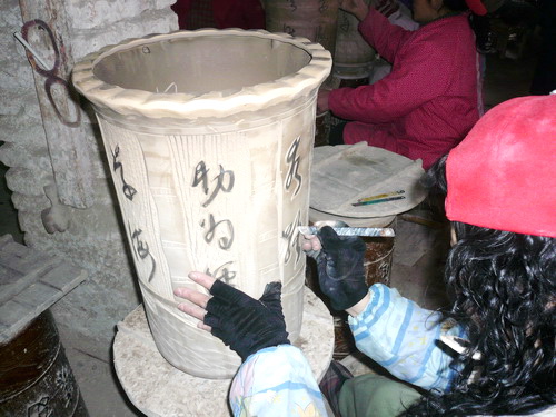 写再进行刀刻, 半成品的熟胎硬度是可想而知的。 因为它是烧制两次成形的,成功率相对比较高。