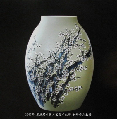 珠山八友之一的刘雨岑先生, 他在粉彩花鸟画的基础上, 为了使瓷器上能达到像国画在宣纸上作画晕染的艺术效果,他将清代画家恽南田、任颐的没骨画技法运用到陶瓷粉彩上, 采用玻璃白直接在瓷面上作花, 而在花上面加洋红点染,这就是当时名噪一时的“水点桃花”。此技法一直沿用至现在, 景德镇青花大师王步先生运用中国水墨画的表现来画青花。像国画一样“墨分五色”,他将青花料水也分五色,力求水墨韵味“着意研究清代画家八大山人,黄慎等人的笔墨殊途, 以豪迈沉郁的气格, 简朴雄浑的笔墨, 为花鸟传神”。