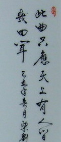 可惜, 当今的陶瓷美术工作者, 能以诗题画的,确实少见。穷其原因,有多方面,这里不加置喙。但是, 由于市场的需要,随着审美能力的提高,文化内涵欠深的作品,其价值终难以提高, 这不是越来越多的各种大师的荣誉称号解决得了的。关键在于继承发扬优良传统, 多加学习,不断拿出具有丰富内涵的作品来,才能使景德镇陶瓷美术进一步发扬光大。正像我市一位先生的诗作所云: “画上题诗如点睛, 诗中有画更怡情。今人犹赞是王摩诘,始信坡翁绝妙评。 ”并进一步希望: “瓷上如能汇三绝(即诗、书、画), 珍稀妙品价连城。 ”诚如是, 则景德镇陶瓷美术将继往开来更受世人的青睐。 (张忠铭)