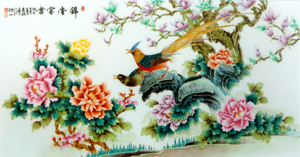 总之,牡丹花的瓷上表现, 从图案到写实,从单色到多彩, 从折枝到全景,经历了一个不断发展创新的过程。但传统的牡丹画法始终没有摆脱那种用刚力线条来定型的基本方法。近年来,开始有瓷画家用中国画的没骨法在瓷上画牡丹,获得成功。