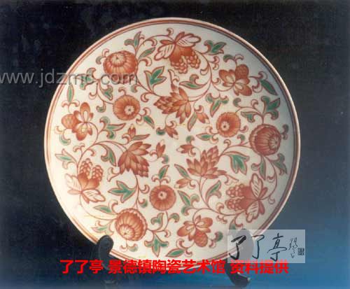 了了亭 景德镇陶瓷艺术馆 资讯 本文刊发于《陶瓷研究》: 古彩装饰图案中的花卉大致分为草本和木本两类,草本有荷花和菊花,木本有牡丹和梅花,这四种花是古彩绘画中最常见的。牡丹是代表大富大贵,古彩中抓住牡丹的花头,提炼夸张使花卉看起来更欣欣向荣。莲花寓意多样,如连年有余、百年好合,都是通过谐音,表达对美好生活的愿望。古彩装饰中,加入作者主观思想,有时候花头画的比荷叶还大,从而突出主题。梅花冬日开放,不畏严寒,高风亮节,独天下而春,它高洁、坚强、谦虚的品格,象征着人文气质。而菊花也是冬天开放,它隽美多姿,然不以娇艳姿色取媚,却以素雅坚贞取胜,自古也是人文士大夫喜爱表现的题材。花瓣排列整齐,层次分明,如图案装饰的美感。另外如兰花、石榴、竹子等题材也是古彩常表现的装饰图案。