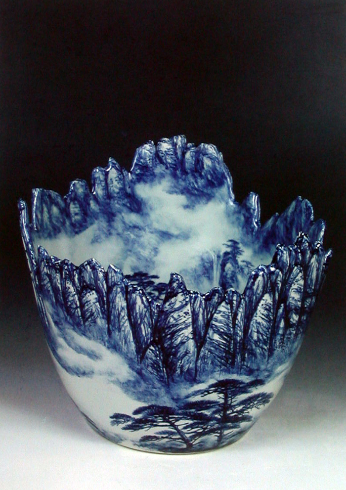 中国画在数千年的发展过程中,也积累了丰富的艺术理论,例如南北朝谢赫的六法论:气韵生动、骨法用笔、转移模写、应物象形、经营位置、随类赋彩。还有历代的大师名家留下来的画理画论,可以说是不可胜数。不仅如此,中国画还有个极强的后盾,那就是中国书法。历来的中国画家都讲究书法同源,以书法笔意入画。实际上书法是我国民族文化的核心。历史上留下来的碑,帖。还有浩如烟海的书法艺术理论,真是有着取之不尽,用之不竭的营养。所以青花陶瓷艺术向中国画学习,是理所当然的,是必须的。