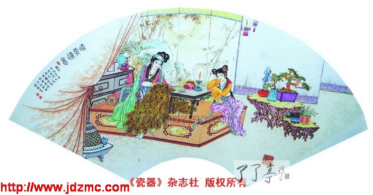 要了解陶瓷工笔人物画的表现技法,首先要把握中国古典人物画的发展脉搏,掌握它的构成要素。人物最早的造型是在新石器石代的彩陶纹样中出现的,虽然是剪影的形式,但在造型观念和线条表现上,为其后的工笔人物画的发展奠定了基础。因此,工笔人物画发展到战国时代,在用笔、用色、章法、结构上都达到了相当的水平。到魏晋南北朝时期,源自印度的美术传统在此时期为中国工笔人物画带来了新鲜的观念与技法,特别是在色彩的表现上,更使原来的中国工笔画发生了一次深刻变革。以浓丽的色彩、工细的勾染和准确的造型为特征,逐渐完善着‘种新的语言形态。顾恺之更是在这种语言形态中,贯彻着“传神写照”的美学追求,大大提升了工笔人物画的艺术品格。唐五代以后,阎立本、张萱、周叻、周文矩、顾闳中的经典之作设色更是艳丽高雅、造型雍容华贵,描绘细腻、准确,再现了盛唐时期上层的生活情景与内心世界,体现了中国古典工笔人物画高超的水平。中国工笔人物画的创作达到了历史上的高峰。北宋以后工笔人物画被文人画家所冷落,一些重要画家把创作的兴趣投入到水墨竹石上。但李公麟以笔线韵致和浓淡变化的墨色进行自描创作,使这一时期的工笔人物画创作保持了一定的艺术高度。明清是工笔人物画最为成熟的时期,大多作品人物造型严谨、精神面貌刻画入微,在细致刻画人物面部的同时,更注重体现“写貌传神”的创作原则。陈洪绶一改中国工笔人物画的风格,造型上以变型、怪诞而形成独特的画风。