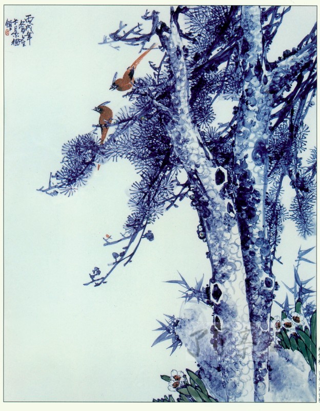 到了近代, 一批深受传统文化熏陶的有识之士投身于青花陶瓷的创作。他们当中以有“青花大王”之称的王步为杰出代表。王步首创借鉴中国水墨画技法创作青花,他吸取陶瓷艺术中简练、雄浑的优良传统,结合文人画的意境, 以青花料为墨,大胆采用洒注青花料色的分水方法, 突破了传统青花先勾线、后分水和用笔分水的传统青花技法, 以“料分五色”,达到“墨分五色”的艺术效果,开创了极具个人特色的新风格。
