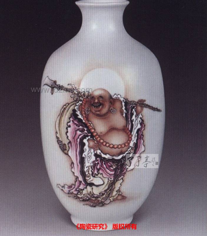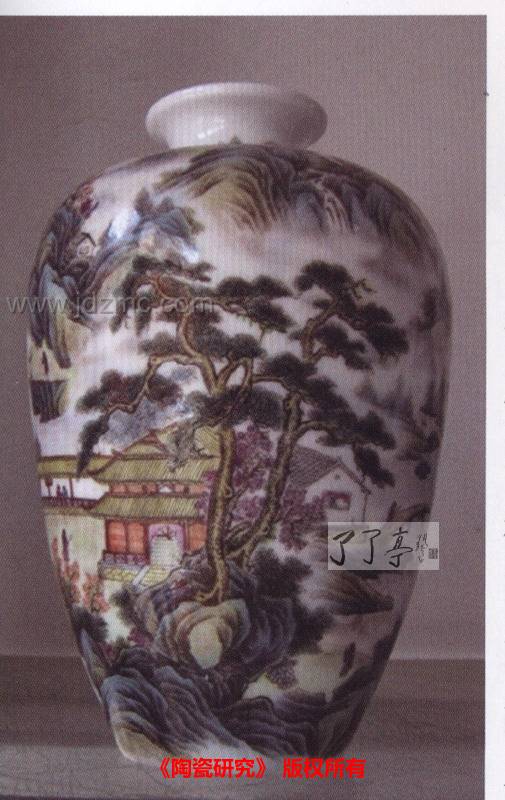了了亭 资讯 本文刊载于《陶瓷研究》: 综合装饰是指在一件整体构思和综合思考的陶瓷作品中,综合运用两种以上不同属性的装饰工艺和技巧,诸如刻、填、喷、彩等多种工艺装饰手段;或使用釉料、泥料、彩料、色料等不同装饰材料;或采用釉上、釉下不同的彩绘技法等,使多种装饰工艺和技术相互映衬、各显神采、以形成赏心悦目的综合艺术效果和意趣横生的艺术魅力,它是现代陶瓷艺术中被广泛运用的装饰艺术形式。而“釉上彩”装饰则有占彩、没骨、彩粉、彩新彩等之分。釉上彩画是在继承和延伸传统中国陶瓷艺术精髓的前提下,绘画技法上,釉上彩画将中国画讲究构图布局、笔墨线条、情趣意境等有机糅合在一起。因此,釉上彩要有新的视觉切入点,从多角度和更宽阔的视野范围中,使釉上彩的斑斓色彩在广茂的自然界中绽放、运动……