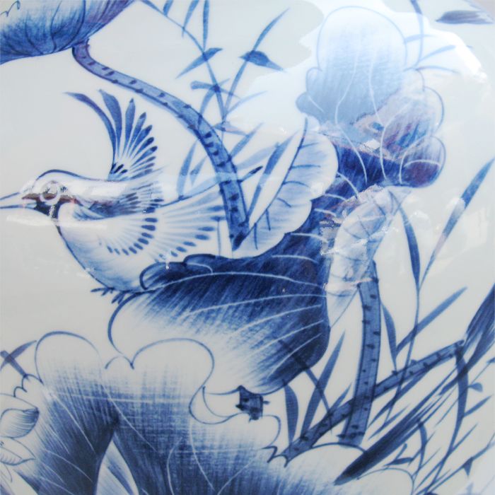 氧化钻料石青花瓷的主角,青花写意花鸟瓷画缺了钴料,那就成了“无米之炊”。因为料色“既足,没设可,不设色亦可。”在这里,青花写意常用钴料画绿色荷叶,翠绿的柱子,墨绿的松叶,以蓝代绿,“料即是色”。唐代王维说:“大画道之中,水墨最为上,肇自然之性,成造化之功。”青花绘画以料代墨,以料代色,其钴料运用的目的主要在于表现物象的体积感、质感、运动感、远近感,以及气势氛围等等。钴料的用法实质上市历代陶工在实践中不断总结出的经验。而青花写意花鸟画“草木敷荣,不待丹碌之采;云雪飘扬,不待铅粉而白。山不待空青而翠,凤不待五色而縴。是故运墨而五色具,谓之得意。”因此“料”之五色,即色彩之意象,意在得色彩对比节奏中的精神。