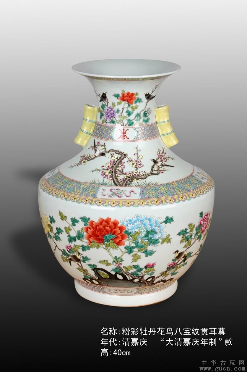 ■ 了了亭 资讯 本文刊载于《陶瓷研究》: 粉彩花鸟的构图应根据陶瓷器型和表现对象的特点灵活应用。一般来说,平面器型(如瓷板类、瓷盘类、镶器类)多才、采用中国画的边角式或折枝式构图。瓶、罐。鉢尊、碗等立体器型, 即可采用边角式、折枝式构图, 也可采用全景式, 即通景式构图。画松竹梅等物象一般采用瓷板条幅或较细长的瓶类,这样有利于表现松竹梅的高标挺拔之姿和蓬勃向上的精神,牡丹、荷花由于花盘硕大, 叶披纷或舒展。故多采用横幅较宽的瓷板或腹径较大的瓶罐类器型,有利于表现牡丹的雍容华贵。荷花荷叶的卷舒开合。而且画面上能有物象的布局必须遵循:合理取舍、宾主分明、虚实相间、疏密有致、藏露得体、呼应有趣等 构图法则。其中呼应尤为重要。所谓呼应,就是画中 一切物象均要互有关联, 要将一花一草、一木一石、 一鸟一虫等等皆视为有灵气有感情的生命体。形态上要 硕盼有姿;神态上要互动有情。如己故老艺人黄金山画的大型瓷板《百鸟朝凤》:中央是一对凤凰立于梧桐树下, 凤为雄,居上方,雄姿美发,凰为雌,居下方。温柔地依偎在凤的旁边,四周孔雀、锦鸡、丹顶鹤、喜鹊、燕子、绶带、八哥等个种禽鸟,它们眼睛的朝向,飞行的方向全部集中在位于中央的凤凰。象征富贵的牡丹和芙蓉。安排在画面的中心地段,松、竹、梅、兰、菊、水仙、绣球等等花木的分布也错落有致。能有花鸟的布局繁而不乱,既有变化又有相对协调统一,显得生机蓬勃。情趣黯然。真是:群芳争艳靓春色,百鸟欢鸣朝凤凰。三、粉彩花鸟的装饰技法。粉彩花鸟的装饰应根据颜料、溶剂的用途特点、作品物象的特征以及烧成后的艺术效果来灵活应用。通常分以下五种: