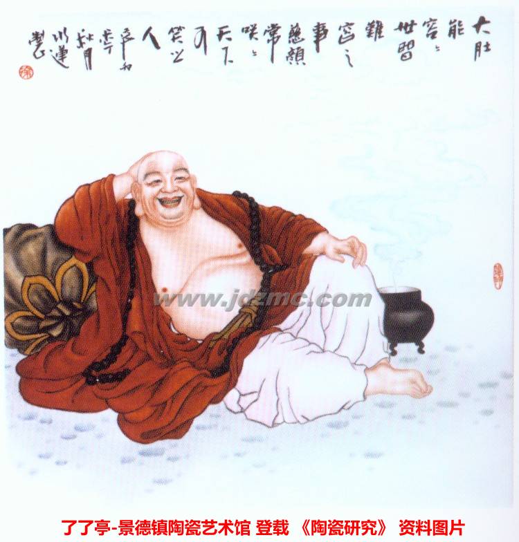 了了亭 资讯,本文刊载于《陶瓷研究》: 明朝天启以后的民窑瓷器上诗句配上写意画面是明代文人山水画对瓷器装饰的直接影响。到了明末清初,一批有国画修养的文人墨客进入景德镇,如擅长画人物的王少维,画山水的程雪笠,画花鸟的潘陶宇,继后的“珠山八友”均以清新的国画技法大大影响了当时的传统画。如绘画神技王琦,落地粉彩王大凡,水点桃花刘雨岑都在传统的基础上,为了在瓷器达到像国画在宣纸上作画晕染的艺术效果,吸收了清代画家恽南田,任臣的“没骨花鸟画”技法,运用到陶瓷粉彩上更显得陶瓷艺术别具一格。当代“青花大王”王步先生运用中国水墨画的表现方法来画青花,像国画一样墨分五彩,他将青花料水也分五色,力求水墨韵味;以画虎著名的毕渊明,花鸟画家马颂良等,都擅长金石,书法,诗词绘画。他们在继承上创新,把国画技法运用到陶瓷艺术上的技艺,更是瓷都艺术之宝。江山代有才人出。景德镇还有许多的老一辈艺术家,都功力深厚,造诣极高,作品境界各具特色。如胡献雅的“苍劲雄健”,王锡良的“高雅自然”,张松茂的“秀丽雅致”,关宝琮的“雄浑清新”,赵惠民的“古典雅致”,王隆夫的“苍劲泼辣”,以及解放后成长起来的陶瓷艺术家,刻苦学习,勤奋笔耕,敢于创新,他们的陶瓷艺术作品既具有传统的艺术色彩,又显示强烈的时代感和浓郁的生活气息,有的严谨细腻,有的笔触娴静,有的高雅飘逸……许多作品都充满了耐人寻味的笔墨情趣。在陶瓷艺术题材上,多以宫廷生活、民间风俗、神话传说、文学作品作为素材,加以作者个人的思想情感,创作蝶》,精心描绘了一位正在簪花的古代少女,那娇羞怯怯、含情脉脉的神态栩栩如生,呼之欲出。身后几朵娇艳欲滴的牡丹和一对翩翩起舞的蝴蝶,一动~静,相互映衬,春意盎然。