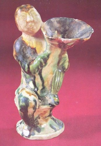 嘉靖官窑人物纹饰是继成化之后的又一个高峰,其人物题材日趋广泛,常见人物纹饰有高士、婴戏、仕女、神话人物、寓意人物、山水人物等。由于嘉靖皇帝好黄老之道,故道教人物在所有纹饰中占得比重较大。其构图虽然繁缛但不呆滞,画法多为填色,画风自然生动。人物造型夸张,如婴戏的后脑凸起,寿星的额头几占头部的三分之二,给人以醒日之感。嘉靖民窑人物纹饰题材模仿官窑器物,但构图较官窑繁缛,勾线较硬,画风拙朴。人物形象有的写实,有的极度夸张,艺术水平不高。此时官、民窑五彩器中的人物纹饰,则以色彩浓艳火爆,色调纯正,并首次以戏曲小说人物入画,在陶瓷史上占有一席之地。