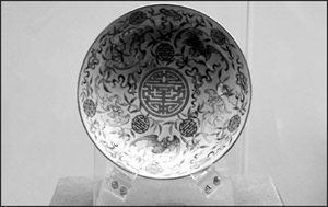 | 黄地矾红“五福捧寿”盘(清嘉庆年间)。 |