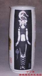 我国的陶瓷艺术博大精深,其发展不仅凝聚了我们民族的审美心理的发展历程,而且还凝聚了千百年来劳动人民的聪明才智。正如邓白先生曾云:“其美学内涵之宏大、意境之美妙、体系之独特,特别是火的魅力,是一般工艺美学所不能概括和不曾涉及的”。但我们从陶瓷艺术语言本身去分析,不难看出陶瓷艺术语言是在不断借鉴与吸收其它门类的艺术之长,并以加强自身的独特艺术表现力的基础上,建立和完善起来的,陶瓷艺术和其它艺术门类一样,面临着现代思潮的冲击。为此我们应强调陶瓷审美观的更新,勇于在新的工具、材料,新的表现手法,新的艺术语言等方面进行探索。 随着时代发展,社会的进步,艺术家必须以自己的艺术风格和特色适应人们的审美观念的变化。陶瓷艺术自身的规律也迫使艺术家去求新变革,丰富自己的创作语言,既要保持民族艺术的特色,又不能以继承传统为满足。“不进则退”、“变则通”,这是亘古不变的至理名言。近年来,笔者在陶瓷艺术的创作中,探索借鉴黑白木刻的刀法,黑白装饰画的语言,研究高温颜色釉装饰技法和质量效果,通对对无光黑釉刻瓷实践,从传统文化和现代艺术交融来探索对艺术的独特感受。在藏龙卧虎的瓷都美术界,寻找到属于自已的座标。 笔者自幼随父专习版画时,便深深为其黑白语言所吸引。黑白作为艺术审美功能中的一种语言,蕴存于国画、版画、油画、雕塑和工艺美术等各类艺术形式中,版画方面尤显重要。黑白在众多色彩中是最单纯,也最醒目,是“五彩之中之主彩”(潘天寿语),是客观世界艺术高度夸张概括的结果。因为在远距离的视觉中,一切中间调子都会消失,留下最能打动人的心扉的是黑白二色。难怪有评论家不无夸张地说:如果世界毁于一旦,却能从比利时版画家麦绥莱勒包罗万象的黑白版画中予以重建。由此可见黑白二色的表现力是多么的强大。 事实上,有关黑白二色的论述,在中国历代画论中是屡见不鲜。如:“以墨代色”,“知白守黑”,“白以当黑,奇趣乃出”等等,都是古人对黑白精辟论述。著名教育家、艺术家潘天寿先生也曾多次论及黑白问题,如“黑白二色,对比最为明豁,为吾国群众所喜爱”。“吾国绘画一幅画中,无黑无白,即不成画矣。”这足见黑白美感在我国绘画上应用不仅有悠久的历史,而且还有坚实的群众欣赏的基础。 版画中的黑白观念,是将所有处于中间状态的色彩和层次走向两个极端,即色彩的两极化。它的秩序编排,关系到作品的成败。其中黑色起着主导作用,白色又是不可分割的组成部分,大块的黑白对比,定下基本骨架,小块黑白及线条,起着丰富画面和加强气氛起伏和节奏的作用。它要求以刀代笔,在放刀刻的时候,往往能从必然中出现偶然的特殊效果。要达到这种境界,就绝对不能在纸上画成木刻,要靠刀把形象表现出来,做到准而有变,简而见繁,美而不媚。这些黑白木刻中美的法则,正是在陶瓷艺术运用中极其重要的方面。 刻瓷艺术是我国的传统陶瓷装饰方法之一,但都是在白胎上进行装饰,并非有黑白木刻的艺术感觉。要想在陶瓷艺术中运用黑白木刻的艺术特色,就必须大反瓷器画中以白瓷本色为底色的常规。因此笔者大胆采用无光黑釉为底色,进行瓷刻的探索性研究,使画面能有黑白木刻的艺术感觉,而不是黑白木刻自身的反映。因为木刻和瓷刻的材料不同,即使用同样的刀法,在不同的材料上刻划,必然会产生不同的效果,所以我们在瓷刻创作时,不能去百分之百追求木刻的艺术效果,重要的是借鉴版画的黑白语言,结合器型的特点,结合陶瓷材料的特性,将黑白语言在刻瓷中运用自如,发挥其概括想象之能事,以简洁明快、对比强烈、刀法多变等黑白木刻的艺术特点,在刻瓷中得到充分运用,创造出一种黑白刻瓷陶瓷艺术,从而形成一种黑白刻瓷的特殊艺术语言,这才是黑白木刻在陶瓷艺术中运用的真正目标。 黑白木刻在陶瓷艺术中运用,最关键的是黑白对比交替的妙用,因为这是木刻技巧中最突出的特点。笔者在刻瓷艺术创作中,根据不同的内容对黑白的运用作了不同的安排,强调了黑白对比的艺术效果,使之在不同的画面上产生了不同的节奏与韵律。刻瓷《唐女)和《送子观音》虽然均属于传统题材,但是在黑白的安排上有所不同,用刀的手法上也有所不同。前者以点面为主构成了较为严肃的格调,后者以线面为主构成了较为活泼的气氛。由于这两幅画面用了两种不同的黑白构成,产生了两种绝然不同的节奏和韵律,给人们感受到不同的黑白美感。 黑白木刻中“单纯与丰富的统一”,在陶瓷艺术中运用是难度较大的。这就要求创作者对于生活有“变丰富为单纯”,对于表现有“变单纯为丰富”的才能。笔者在《肖像》瓷版画创作中,特别注意到单纯与丰富对立统一的关系,更为突出地强调了黑白的对比。整幅画在黑白安排上作了大面积的黑白对比的构成,只在五官和手饰、项饰等小部分作了极为细致的精雕细刻。此作的构图饱满,刀法严谨,表现了人物健壮有力的不凡气度。在创作这件作品时,充分运用了黑白本刻对生活高度概括的特点,抓住了生活中对象的主要东西,去伪存真,将复杂的色调归纳在单纯的黑白之中。通过巧妙的黑白处理,在粗与细、大与小、面与线的黑白对比中,使人们从美的感受中联想到五彩缤纷的色彩。 黑白木刻的刀味与装饰的美感,