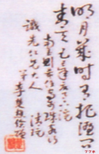 钤印,指盖印章。印章分朱文印和白文印两种。朱文印又称阳文,即字是凸出的,印在纸上字是红色的;白文印又称阴文,即字是凹陷的,印在纸上字是白色的(见图 118 )。 从印章的内容来分,又有姓名印、斋号印及闲章。一般在落款人名后盖一姓名印,若嫌空还可再加盖一斋号印,不可连盖两方同一内容的姓名印。可盖一方姓印,一方名印,而往往又是一朱一白。为了使书作上下前后呼应,往往在书作右上方再盖一起首印,又称引首印(见图 118 ),初学者闲章印的内容可选“学海”、“求索”、“学书”等。印章的大小与书作大小及所书字体大小相关。一般大幅书作落款字大,印亦大,小幅书作落款字小,印亦小。 |