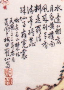 创作时,大字写完了换小笔写落款,落款竖写,可写两行,也可一行只写作者姓名(称穷款)。根据留空多寡落款,可写内容出处,还可写年代,最后写姓名,“某某人书”。一般落款字小于正文的字,书体可于正文相同或带行意的楷书以示区别。最后盖章。