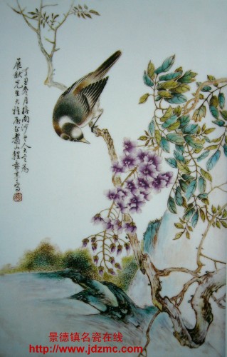 陶瓷与绘画,从一开始就如孪生姐妹而血脉相通,同根植于民族文化的沃土之中。在古代,绘画与工艺美术本是一体的。翻开中国绘画史,在第一章里首先提到的是彩陶,继而青铜器,其后是帛画和画象砖,可见当时的绘画是从属于工艺品的。随着社会的发展,造型艺术的分工越来越细,其中一部分逐渐地同政治、宗教、文学结合起来,进而从工艺美术中,从十分丰富的各种材料中分离出去,成为以纸(绢、油画布)、笔、颜料为工具的独立的、纯粹的造型艺术——绘画。尽管如此,她们的血缘关系仍决定了彼此间相互影响、相互渗透、相互借鉴和相互促进的姐妹关系,共同反映出各个历史时期的社会美学观点和民族文化心理特征。 众所周知,景德镇粉彩瓷素有“始于康熙、精于雍正、盛于乾隆”之说。其问世发展迄今,即与中国画结下了难解之缘。尤其是工笔花鸟画的影响,无论是构图立意还是运笔设色及表现技巧和装饰风格,都在粉彩瓷上表现得淋漓尽致。笔者认为,中国工笔花鸟画对粉彩花鸟画的影响可谓至深至广。从某种意义上来说,粉彩花鸟画装饰风格的形成和发展,在一定程度上折射出中国工笔花鸟画的艺术成就,反映出“笔墨当随时代”深刻的哲理内涵。 一 大自然中的花鸟不仅和人类的物质生活有着紧密的联系,而且以其优美的品性和生动的形象,给人以精神上的陶冶和美的享受。自远古时代起,当人类尝试用艺术表现自身力量的同时,也在艺术中开始描摹那些充满无限生机和活力的花鸟。这些艺术化的花鸟,不但较之自然界的花鸟更具典型性,而且寄寓了人们主观的精神情感。因此有着较高的欣赏价值。如河南省临汝县出土的《鹳、鱼、石斧》陶缸,从这件原始社会时期的富有寓意的艺术品中,足以说明,花鸟画的产生与其它文化形态一样,都是源于劳动和现实生活的。正因为如此,我国传统绘画中的花鸟也经历了一个源生于工艺美术,又独立于工艺美术漫长的发展过程。由于其历史悠久,涉猎的题材面广阔,表现形式和手法日趋丰富,风格极为独特,再加上历代画家在创作实践中积累起来的系列理论,使得花鸟画和山水画、人物画鼎足而立,在中华民族绘画史上占有相当重要的位置,也在陶瓷文化史中显示出无穷的魅力。 工笔花鸟画意在工整细致,从艺术角度描绘出时花候鸟的具象。北宋韩拙《山水纯全集》就有“用笔有简易而意全者,有巧密而精细者”之说,工笔的画法要求即属于后者。唐代花鸟画已趋向工细写实、务求形色俱丽的风格。五代时期的画家继承了这一绘画传统并有了重大的发展。黄筌的“勾勒彩晕法”和徐熙的“叠色渍染法”,丰富和发展了工笔花鸟画的表现意韵,画史上有“黄家富贵、徐熙野逸”之赞誉,亦为后世工笔花鸟画的继续发展奠定了基础。同时也为粉彩花鸟画的开创起到潜移默化的作用。 二 时至清代的雍正粉彩在画法上明显地受工笔画影响,尤其是花鸟画,无论在构图,设色和用笔方面,均可以看出工笔花鸟画的表现形式起主要作用。由于陶瓷与纸画质地的差异,粉彩颜色是用油所调料而成。粉彩花鸟彩绘技法中对鸟的表现常用珠明料调黑颜色,艳黑或西赤勾勒形态,前者根据情况一般在料地上薄施广翠或耐火红、后再填上粉大绿或其他颜料。后粉彩颜色中又出现了玻璃白、它是一种不透明、呈乳浊状态的氧化坤,烧成后即可以高出瓷器表面有立体感。玻璃白主要用于作花卉洗染的底色,使瓷画达到粉润柔和艳丽明快的效果,这与工笔花鸟画技法中染色尤为相似。在陶瓷上更适合于表现翎毛花卉。所以工笔花鸟画盛行于整个康、雍、乾及影响清末民初时期。 在“绫绡之寿不如纸幅,纸幅之寿不如瓷品”的风尚中,景德镇御器厂所绘贡瓷的式样一概由清宫内务府御用画师设计。《清史稿》载:“时江西景德镇开御窑,源(刘源,字伴阮)呈瓷样数百种,参古今之式,运以新意,备储巧妙于彩绘人物、山水、花鸟、尤各极其胜。”“莫不与当时名人纸画相表里、款识、书法、题词也尽取纸画作风”。据唐英自撰的《陶成纪事碑记》说,贡瓷“其画染……规抚名家,各有原本。”花鸟多据蒋廷锡、邹一桂。粉彩开光则从郎世宁法而出。“雍正花卉纯属恽派,没骨之妙可以上拟徐熙,草虫尤奕奕有神,几于误蝇欲拂”。他评论二支玉壶春瓶上“画白桃花一枝,红桃花两枝,所谓碧桃者也。画笔生动,娇丽无比,使南田命笔,难以复过。惜不著画者姓名,以视蝴蝶落英”。 尽管工笔花鸟纸画在清末时期走向衰落而写意的文人画走向成熟,但粉彩瓷上的花鸟画却因为“艺术与商品”并重的传统观念和粉彩工艺和特色,仍占据粉彩瓷装饰题材的首位。尤其是景德镇“珠山八友”继承了中国的优良传统,把国画的表现技法与陶瓷装饰结合起来,对景德镇瓷器装饰艺术的发展起了不可低估的促进作用。就粉彩花鸟画来说,尤以程意亭、刘雨岑为代表。 程意亭的粉彩工笔花鸟画师法名家恽南田。其作品融国画技法与粉彩工艺为一体,尤其是恽南田浅描在造型中的骨架作用的真谛,被他深切体会,并巧妙地运用于瓷画笔触之下。他的代表作有《翠鸟荷花》瓷板画,下角岩石突兀上的两只翠鸟,一俯视水中游鱼,一仰视荷花,显得画面丰满,花卉老成,鸟态矫健,宛若弹拨墨线铸成的琴弦,奏出荷花的形、枝、干的质姿,叶的韵态。尤其是效法恽派在花瓣边缘变