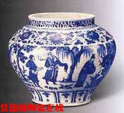 其他还有流于英国,现藏于伦敦维多利亚和阿尔伯特博物馆的“西厢记”青花梅瓶;1996年苏富比拍品“西厢记”青花盖罐;日本出光美术馆收藏的“吕洞宾”青花玉壶春瓶;广东省博物馆收藏的“陶渊明访友”青花玉壶春瓶;1985年日本大阪《元代瓷器展》图册所录的“周亚夫军细柳”青花盖罐、“百花亭”青花盖罐等。及上述各件现在尚未对内容作出考订的人物故事瓷器,无论哪件都称得上是精品。
