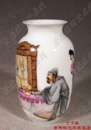 ![]() [典故简介] 东汉时期的丁兰,很小的时候,父母双亲相继病故,成了一个孤儿。丁兰在苦水中泡大,领略了人生的各种酸甜苦辣,常昼思夜想,深切怀念父母对自己的养育之恩。他用木头雕刻了父母的形象,供奉于厅堂,作为一种安慰和寄托。平日里,他像侍奉活着的父母一样,毕恭毕敬、虔诚孝顺。凡事都与木像商量,出门必向木像辞别,回家必向木像请安,一日三餐,都是先敬木像之后,自己才与妻子动筷子。时间长了,丁兰视木像如亲生父母,感情异常深厚。 可是他的妻子便不这样想了,因为她从来就没有见过公婆,不知道怎样尽妇道。丈夫这般痴心地侍奉两个木像使她大惑不解,日子久了,对木像也就就不像以往那样恭敬了。一天,丁兰又出了家门。他的妻子闲得无聊,便用一根针去戳木像的手指,边戳边开玩笑地问木像疼不疼。说来也怪, 那木像的手指竟是湿漉漉的,像是在流血。丁兰回来后,看到木像似有无限悲哀和委屈,眼里垂泪,酸楚无语。他赶紧洵问妻子发生了什么事情,妻子坦白相告。丁兰极其生气,一气之下将妻子休掉了。 【站长小语】 丁兰“刻木为像”,表达对父母的哀思, 事事叨念父母亲的 “劬劳之恩”, 其爱之深, 不言而喻! [书法原文)丁兰刻木事亲 汉丁兰,幼丧父母,未得奉养,而思念劬劳之恩,刻木为像,事之如生。其妻久而不敬,以针戏刺其指,血出。木像见兰,眼中垂泪。兰问得其情,—遂将妻弃之。 刻木为父母,形容在日时。 寄言诸子侄,各要孝亲闱。 [典故后继] 廿四孝之少数故事,在流传过程中,经人反复修改加工,染上些迷信色彩,情节变得荒诞,丁兰刻木事亲即为一例也. (追溯陶瓷文化艺术创作的源头,使大家更了解陶瓷创作典故的背景与来源。了了亭·景德镇名瓷在线整理编辑) |