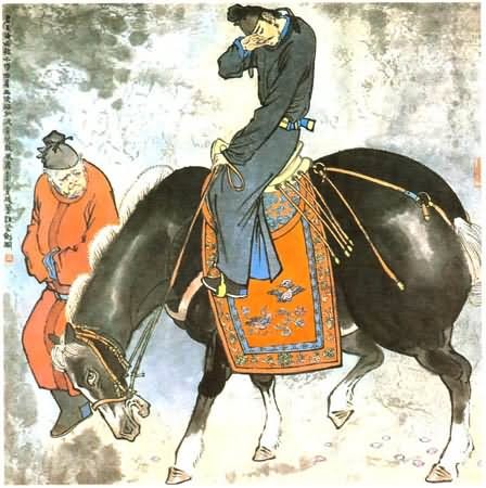 君王掩面救不得,回看血泪相和流。 黄埃散漫风萧索,云栈萦纡登剑阁。 峨嵋山下少人行,旌旗无光日色薄。蜀江水碧蜀山青, 圣主朝朝暮暮情。行宫见月伤心色,夜雨闻铃肠断声。 天旋地转回龙驭,到此踌躇不能去。 马嵬坡下泥土中,不见玉颜空死处。 |