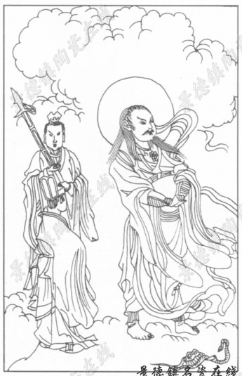 玄天上帝(真武帝) 真武即北方之神玄武,北方七宿,其形如龟蛇,龟蛇即玄武。宋时避讳改玄为真,称真武帝。真武兴盛于宋代,至元代又被晋升为元圣仁威玄天上帝,明成祖时地位更加显赫。有关真武的传说中,又皆称龟蛇乃六天魔王以坎离二气所化,然被真武神力蹑于足下,成为其部将。后世称之为龟蛇二将.(追溯陶瓷文化艺术创作的源头,使大家更了解陶瓷创作典故的背景与来源。了了亭·景德镇名瓷在线整理编辑)