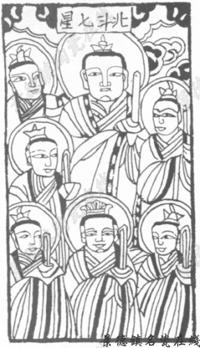 北斗崇拜在星辰崇拜中地位突出,是由于它与人们的生活关系密切。古人很早就认识到北斗七星不但是夜间显示方位的极好标志,而且其运行规律对于制定历法大有作用,以其在北方,有七星聚成斗形,故名北斗。道家亦称天罡。七星者:一天枢、二天璇、三天玑、四天权、五天衡、六开阳、七瑶光。(晋书·天文志):北斗七星在太徽北,枢为天,璇为地,玑为人,权为时,衡为音,开阳为律,瑶光为星。(太清玉册)载:北斗七星称为七元解厄星君:一曰贪狼,二日巨门,三曰椽存,四曰文曲,五日廉贞,六曰武曲,七日破军。奉道者拜礼北斗七元星君,奉为消灾解厄,保命延生也.