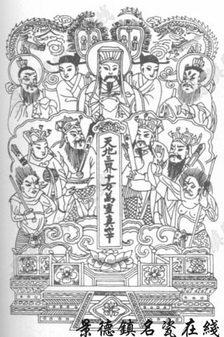 《道德经》说:"道生一,一生二,二生三,三生万物。"道教则把它演变为"洪元"、"浑元"和"太初"表示三个不同的世纪,认为"道"无所不在,无所不包,是一切的开始,有了"道",才有宇宙,宇宙生元气,元气构成天地,阴阳从而产生万物,这三个世纪是"道"的演化。再把"道"人格化,化为神,称为"玉清"、"上清"、"太清"三神,也可以理解为他们是"道"的三个化身,所以,又有"太上老君一气化三清"之说。 道教敬奉“三清”为最高神。所谓“三清”,就是元始天尊、灵宝天尊与道德天尊(又称太上老君,亦即老子),“三清”是三位神君的总称。 灵宝天尊是道教第二大神,他象征混沌初开,阴阳分明。据说他住在清仙境。 道德天尊(即太上老君)说他住在最高三天界的第三层太清仙境。说他著的《道德经》是道教的主要经典。 (追溯陶瓷文化艺术创作的源头,使大家更了解陶瓷创作典故的背景与来源。了了亭·景德镇名瓷在线整理编辑)