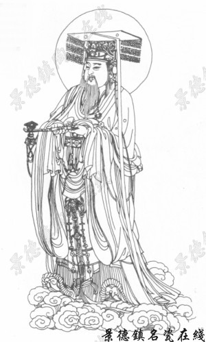 南极长生大帝 道教最高神除“三清”外,还有四御”。四御,即辅佐三清的四位天帝。他们的全称是:一、吴天金阙玉皇大帝;二、中天紫徽北极太皇大帝;三、勾陈上宫南极天皇大帝;四、承天救法后土皇地祗。道教认为南极天皇大帝总御万灵,所以又名南极长生大帝。考察四御的来历(除玉皇、后土外),其它两神名均来源于古代的星辰崇拜。北极即北极星的简称,勾同兴“钩陈”,即勾陈六星. 南极长生大帝全称“高上神霄玉清真王长生大帝统天元圣天尊”,居高上神霄玉清府,简称神雷玉府。 对于南极长生大帝的来历,有两种说法:其一为元始天王长子之说。据道经《高上神雷玉清真王紫书法.序》载:“昔太空未成,元炁未生,元始天王为昊莽溟律大梵之祖,凝神结胎,名曰混沌。混沌既拆,乃有天地。中外之炁,方名混虚。元始天王,运化开图,金容赫日,玉相如天,陶育妙精,分辟乾坤。乃自玉京上山下游。遇万炁祖母太玄玉极元景自然九天上玄玉清神母,行上清大洞雌雄三一混化之道,生子八人,长曰南极长生大帝。亦号九龙扶桑日宫大帝。亦号高上神霄玉清王。一身三名,其圣一也。”这位真王,凝神金阙,思念世间一切众生三灾八难,一切众苦九幽泉酆,一切罪魂受报缘对。又因牿劫相求,无量众苦,不舍昼夜,生死往来,如旋车轮。故真王以神通力,悯三界一切众生,即诣玉清天中元始上帝,金阀之下,礼请殷勤,乞问紫微上宫紫玉琼蕊之笈,于九霄宝箓之内,请《神霄真王秘法》一部三卷……元始上帝即敕太皇万福真君以《高上神霄玉清真长生护命秘法》传付下世。其二为元始天王第九子之说。据道经《高上九霄玉清大梵紫微玄都雷霆玉经》称元始天王“第九子位为高上神霄玉清真王长生大帝,专制九霄三十六天,三十六天尊统领”。同时《元始八子封职》中对南极长生大帝的神职亦有记载,谓南极长生大帝任高上神雷玉清王,职太阳九炁玉贤君、玉清保仙王,讳棍洞,字曜华。同卷《八帝封号官职位》中亦称:“第一子任神霄玉清天王,绰霄太平应化道主大帝,遥领扶桑太阳九炁神君。 勾陈上宫天皇大帝简称“勾陈大帝”、“天皇大帝”,为道教尊神“四御”中的第三位神。 (追溯陶瓷文化艺术创作的源头,使大家更了解陶瓷创作典故的背景与来源。了了亭·景德镇名瓷在线整理编辑)
