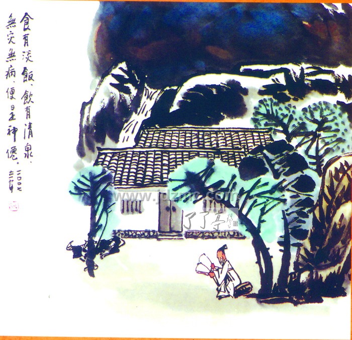 张志安 1930年3月生于江西临川古镇,童年耕讲于乡村,酷爱绘画,1952年开始在《井冈山画报》发表连环画。同年考入鲁迅文艺学院,毕业后,任教于景德镇陶瓷学院、江苏省宜兴陶校。现为中国美协会员,宜兴市美协主席。 志安先生的作品,力求形似和神似的统一,重写生,更重意境的创造,精神的刻划,石涛、八大山人、扬州八怪,以及汉魏碑刻和唐代草书,都对他有较深刻的影响;齐白石、黄天寿、傅抱石、李可染、石鲁,也是他心目中的好老师,他的笔意取材广泛,人物、山水、花鸟、书法、诗歌,无一不擅,无一不精,他作小品,思路广阔,章法奇妙,感情真挚。相反,能小中见大,少中见多,言简而意长,他师法造化,求索心源,不拘泥前人名人成法,气格豪放,神融笔畅,形成了质朴、泼辣、浑厚的个人风格,其艺术深得国内外人士喜爱和赞赏。 现为江苏省陶瓷艺术学会副理事长、宜兴市美协理事长、政协副主席、景德镇画院名誉院长、江西日报景德镇陶瓷经济开发公司艺术顾问、东方瓷画院艺术顾问、台湾《紫玉金砂》杂志顾问。 张志安 文 画是视觉艺术,看到什么画什么。当然应当有选择,以符合人们的道义标准与审美要求。 视觉艺术以形神色彩表达作者的意思。但视觉艺术本身的语言是不完备的,很达表达抽象的意念。因此,许多画都有标题、有题跋。郑板桥画竹,那竹中寄寓着他诸多情怀。“衙斋卧听萧萧竹,疑是民间疾苦声。些小吾曹州县吏,一枝一叶总关情。”若没有这些题句,他对民生的关注,是无法从那几杆墨竹中弄清楚的。 我画桃花源,齐白石也画桃花源,许多人都画桃花源,各人的角度不同,理解不同,画出来的画面与题名都是各不相同的。齐白石画了桃花流水高山。题句:“平生未到桃源地,臆想清溪流水长。窃恐居人惊破胆,挥毫不画打鱼郎。”我画远山泉流,梯田村舍,桃花绕村争艳,近景一老翁牵牛悠然行进于小桥。题句:“误入秦人洞,奇闻说到今。桃花源里好,人际多温馨。”两人的题句都贴切。 人都不是全能,所以除少数画家,如任伯年,大多数人都是各有专攻。或长于兰竹或长于花鸟虫鱼,或专写人物,或尽情山川。我画过连环画,后来学素描水彩、油画。现在则多画鸡鱼、麻雀、草虫、瓜果。因为在这世界上生活了七十九年,经历过战争、贫穷,各种各样的运动,以及人间的诸多风雨阳光,总会是有许多感慨的。所以,笔下所出,亦皆感慨系之。 “莫嫌世上多风雨,一生都在旅途中。”这和每个人的感悟都连在一起,所以要这幅画的人特别多。番禺理工学院院长张碧晖,他的一部专著就是用“一生都在旅途中”作书名的。 我有一幅画,画着三位老人在深山畅叙情怀。画题《天高皇帝远》,曾附诗“举目多少文字狱?说话无错也罹灾。思忖心底存余悸,历朝历代有悲哀。” 一般地说,比较成熟的作品多是借题发挥,以物代言。我画一鸡立于高处向下俯视,题句:“熙熙攘攘,芸芸众生。君在高处,俯视大千。鱼龙混杂,万古绵延。”世界不可能清一色。人心、品格、思想行为不可能清一色。从古到今,从来都是鱼龙混杂的,从古到今,从今到永远都会是这样。 有一次,我和景德镇许多工艺美术大师在上海参加笔会,有一位在一块瓷板上画了一棵松树、一只老鹰,题《松鹰图》。我说:“这样题,题了和没有题没有任何区别,画面和文字全是重复的。”后来我为他题:“我有长空万里”,这符合雄鹰海阔天空展翅翱翔的壮阔场景,也拓展了画面的想象空间。 我顶欣赏一段诗论:“绝句,以语近情遥,含吐不露为主。只眼前景,口头语,而有弦外音,味外味,使人神远。”弦外音,味外味,于诗文书画都是非常重要的。有了这些,就有看头,就有情趣,而这些东西的获得,实际是作者内心充实、生活充实,能从一个事物中产生顿悟与联想的结果。 青菜萝卜、辣椒大蒜、蘑菇竹笋、丝瓜南瓜,这总是常见之物。看到这些,我想起童年那贫穷而又平和、男耕女织的农家日月,“昔日农家,种田纺纱,和和美美,淡饭粗茶。”也想到后来一些不正常的现象。“锦绣江南鱼米乡,荤腥烧炒都放糖。我爱辣椒焖豆腐,粗茶淡饭总芬芳。”“日日盛宴非福,粗茶淡饭不苦。”也有自娱与表白性的画面:“借问山珍为何物?辣椒竹笋草蘑菇。”“淡泊延年”“我无奢求”。时至第年,常有田园之思:“门前给三分地,种瓜种果种辣椒。”但这是不可能的事,于是:“我无分寸地,纸上结南瓜。” 人有什么样的经历,就会有什么样的作品。而每个人都是有自己经历的,就是我们现在的平常生活,也是有许多创作题材的。 我画西瓜、西红柿,题“比棒冰好”。 画丝瓜南瓜,题“南瓜吃老,丝瓜吃嫩”。 潘天寿画葡萄、枇杷,题“寿者所喜”。 前边提到白菜萝卜等画面,也是我们现在生活中的画面。有时,平常生活画面,也能反映社会中的大题材。 作画有四个层次:1、初学,以像形为主。画个萝卜像萝卜,画只麻雀像麻雀……2、学着构图,学着用不同的物象组成画面。3、知道主次呼应,笔墨浓淡,色彩关系。已经能画出完整的画了。4、笔连手,手连心,心连自然万物。情之所至,意之所至,随意点染,皆传达出作者精神境界与笔墨意趣,而且那笔墨形神意趣,是他所独有的。因为作为艺术都是忌讳重复雷同的,所以,有成就的作者,都是独树一帜的。 关注生活,关注大自然,对耳闻目睹的事物,都有自己的理解与感悟,是画家非常重要