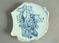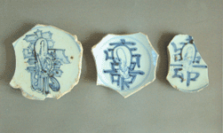 片图一、图二、图三,使读者可以直观的看到这些瓷片的不同特征和装饰差别。特别是在图一这枚瓷片上,所绘画的老寿星图案,笔者认为,它就是一幅比较典型的艺术佳作。该图立意清新、构思巧妙,画师不惜工时,采用了文图结合的抽象和夸张手法,在一个颇有艺术性的“寿”字里,只用那么寥寥几笔,便刻画出了一位聪明伶俐、生动活泼、已返老还童的“老寿星”形象。该盘底直径为8厘米,圈足向内倾斜、底足内施釉无款,釉色白中微有泛青。根据以上诸多特征,参照有关资料说明,笔者初步判断此物应属于明朝弘治期的产品。因为弘治期的民窑图案在前朝的基础上更为丰富,具有布局舒展、绘画工细的特点;且有双勾填色之作。同时,较工细的描绘也达到了民窑瓷绘的高峰。