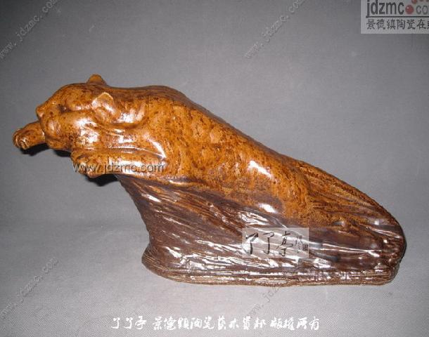 由于虎文化有丰厚、深远的积累,渗透到审美与价值观念许多方面,虎虎生气、龙腾虎跃、虎踞龙盘等这些词语,不仅象征着生命与活动非凡的气度,还象征着一种宏观气象。老虎在中国传统绘画中亦是很常见的题材,历代画虎、欣赏虎画成为一种习尚,许多收藏家对虎画情有独钟。陶瓷虎题材的作品十分广泛,既有釉上粉彩、新彩,也有釉下青花、五彩,还有釉下釉上结合的综合彩;既有在瓷板、瓷盘、瓷瓶上画虎,也有用泥土雕塑的陶虎或瓷虎等。自古以来画虎多有工笔,毛发毕现、栩栩如生。已故陶瓷美术家毕渊明从艺开始就酷爱画虎, 经常细心观察虎姿雄威,潜心探求画虎真功。以后,他又对虎头、虎爪、虎尾的各种动态苦练了十几年时间。再向前人学习,借鉴画虎名师如四川的张善子、广东的高奇蜂等人的技法,逐步形成了自己的风格。在他的笔下,寒风卧虎如磐,巍然雄踞;光天立虎如松,气宇轩然;碧水游虎如龙,悠然成趣;平地奔虎如风,势不可挡。真可谓“虎神生灵气,百态动千姿”。此外,还有写意技法画虎,千姿百态,重在神似。雕塑虎写实与抽象并举, 各有特色, 尤其生肖瓷雕如“王者风范”、“玉虎迎春”、“虎跃五福”、“虎啸风生”等作品,显示老虎“一怒千山震,一鸣百兽惊”的霸王雄风,可谓“虎卧华堂满院生辉”。我们已跨入虎年的时代,祝愿我们的陶瓷艺术家和陶瓷美术家虎年大吉大利,大显身手,以虎气冲天的干劲,创作出更虎的作品。