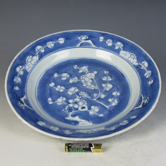 明代的近三百年历史,制瓷业有进一步发展。《陶录》说“开一代未有之奇”。永乐、宣德年间梅花纹装饰仍以青花为主,可分为三个阶段。前期的梅花纹多从元代青花纹饰演绎而来,洪武时期以写意、变形相结合,绘画严谨而工整,永乐、宣德梅花纹绘画多以双勾填色的方法绘成,而且一改以前用大笔一笔深抹得方法而采用小笔,常常出现深浅不一的笔触痕迹加强层次感。中期成化、弘治、正德、三朝官窑青花以成化为著。成化窑青花钴料改用饶州乐平产的“陂塘青”,这种国产青料含铁量较少,因此它既不会出现永乐、宣德青花那样的晕散和黑斑,又能经过精细加工,在适当温度中烧成柔和淡雅而透亮的蓝色。成化官窑青花器中梅花纹饰更趋于轻松愉快、疏简柔美。装饰技法以双线勾勒为主,长笔平涂填色的方法和一笔勾勒点划的方法兼用,没有笔触感。一改永乐、宣德青花的浑融华滋,而呈现出一种飘逸淡雅的风采。明晚期陶瓷梅花纹绘画在釉下彩绘和釉上彩绘都有所发展,并创造出斗彩、釉里红和素三彩的形式来表现梅花。明代陶瓷梅花纹形态主要有写实和装饰性的手法,表现形式多样,如釉里红梅花纹、青花地空心梅纹、五彩梅花纹、点染梅花纹等,梅花纹组合形式和变化形式也逐渐增多。
