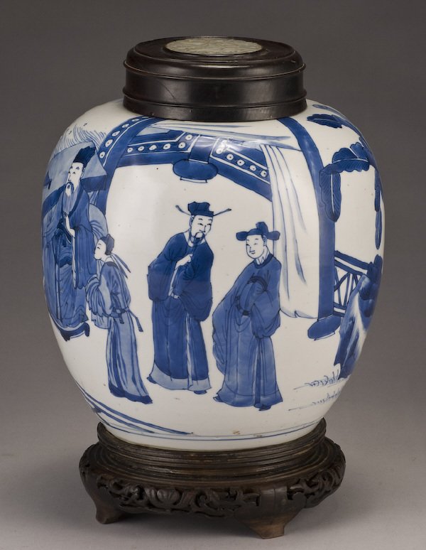 八大山人(1626-1705)法名传綮, 字刃庵。又用过个山、个山驴、驴屋、人屋、灌园老人、道郎等55个号, 后又入青云谱为道。通常称他为朱耷,但这个名字用的时间很短, 晚年取八大山人号并一直用到去世。八大山人是明末清初中国水墨写意派大师, 一生的行踪均为江西中部及北部,白二十三岁清兵占领南昌后, 退避新建,落发为僧, 后又辗转奉新、进贤、永丰、贵溪、南昌、临川等地,最后定居南昌。可以说一直都生活在景德镇民窑青花瓷画艺术氛围中。