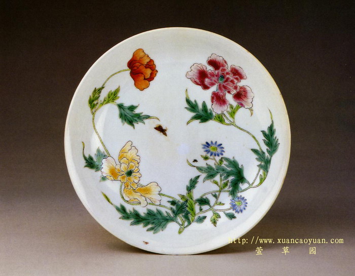 我国历史上很少在设计纹样中有罂粟纹,因而罂粟花出现在康熙瓷眙画珐琅上令人颇感意外。