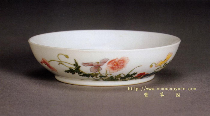 仔细观察这件器物,有两个疑问油然而生?第一,这件器物上的花纹是不是罂粟花?还是与罂粟花同一属的虞美人?若是后者,则好解释,因为虞美人是我国常见的一种花卉,并与虞姬有象征性的联系,虞美人花也是我国艺术家常表现的题材。如果是,则有第二个问题,何以在清官内廷的器物上出现罂粟花?它为什么会出现?和当时的时代有什么样的联系?