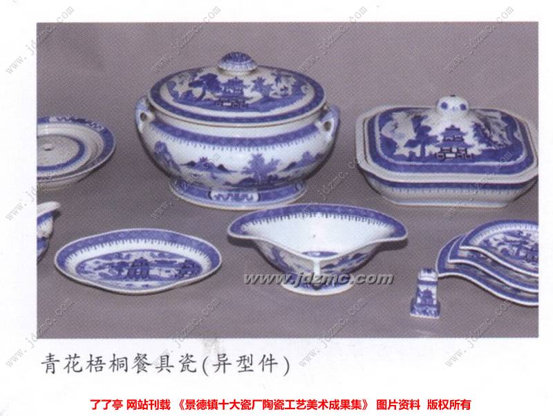 青花.梧桐.是原人民瓷厂青花瓷的一种主打画面,该画面青花瓷1979 年、1984 年、1989 年三次荣获国家优质产品金质奖,在1984年还连获三枚国际博览会金牌,是我国陶瓷行业获奖最多、获奖规格最高的产品,屡屡成为党和国家领导人赠送国际友人的珍贵礼品。