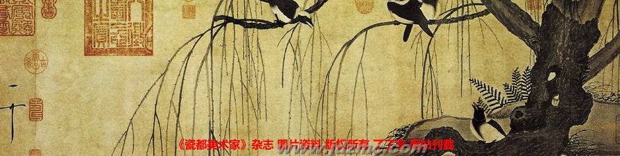 赵佶(1082—1135),即宋徽宗, 宋神宗赵顼之子,哲宗赵熙之弟,初封为端王,元符三年即位。诗书画却有精湛的造诣,尤以花鸟画见长,以工细彩墨为主,,有时并能寓巧于拙。此幅《柳鸦图》中的柳树和鸦采用没骨法,设色浅淡,构图洗练,粗壮的柳根、细嫩的枝条、姿貌丰腴的栖鸦画得都很工整精细。栖鸦双双憩息嬉戏,形态自然安详,用生漆点睛,更显得神采非凡。