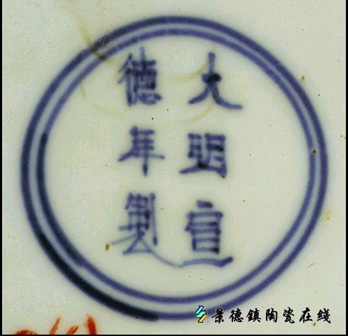 这样,明中后期出现争仿写前朝年款,以仿宣德、成化款最为常见(参看:明隆庆青花花蝶纹盘底款)。