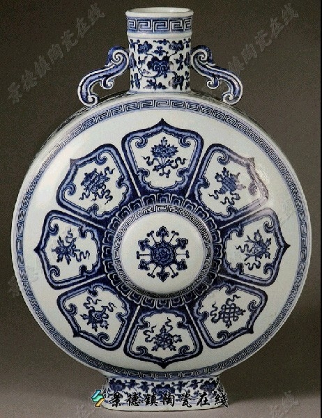 当时以“郎窑”、“唐窑”制品最为逼真。郎窑是指康熙时由郎廷极兼任陶务官时的景德镇官窑。清人刘廷玑著《在园杂志》称赞“近複郎窑为贵,紫桓中丞公开府西江时所造也。仿古暗合,与真无二。其摹成、宣,黝水颜色,橘皮综眼,款字酷肖,极难辨别。”唐窑一般指乾隆时的景德镇窑,实则贯穿雍正、乾隆两朝。当时的督陶官唐英博才多艺,并能与工匠“同其食息者三年”,经过刻苦钻研,居然成为“深谙土脉、火性、诸料”的制瓷专家。在他直接管理和指导下,景德镇窑成就惊人。仅雍正后期,短短几年间,便烧造出仿古品种四十余种,另有创新品种十几种。乾隆时又有更多的品种问世。这一时期的仿古瓷技术上精益求精,但并无牟利目的。特别是官窑的产品,烧出来是为皇宫御用的当然更不敢真的用来鱼目混珠。所以许多仿品并不仿写前朝年款,而是直书本朝年号。清乾隆时并有“大清乾隆仿古”专款(参看:清乾隆粉彩鸡缸杯底款、